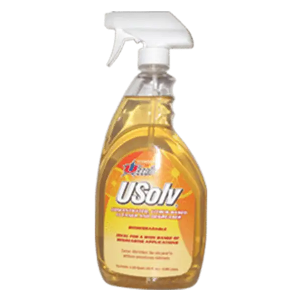 USolv is a powerful, yet natural, extreme duty degreaser designed for concrete floor preparation where areas are stained and oil-saturated. Applied directly to the soiled areas, USolv penetrates and emulsifies the contaminants that would otherwise prevent the bonding of the UCoat It floor coating system. Best of all, even though USolv is powerful, it can be used with confidence around children and pets.