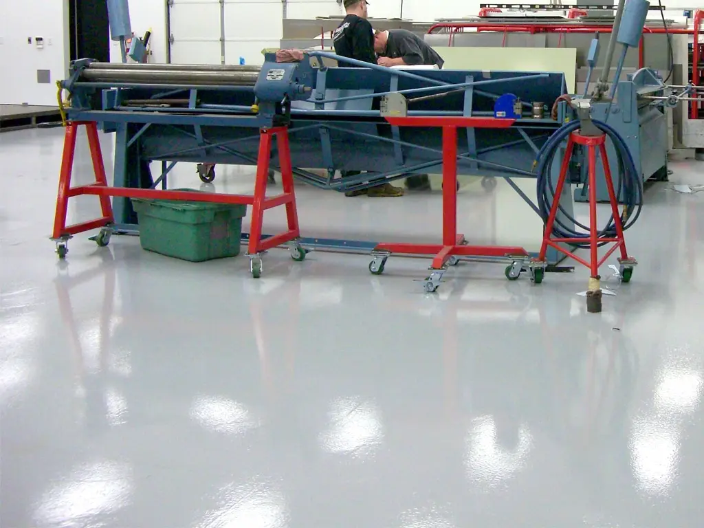 Along with meeting specific qualifications, the challenge was to find a floor coating system that would have a quick turnaround time and provide a brighter and more professional environment. Germain Racing’s automotive shop was going to be for fabrication and its floors would have to withstand welding, cutting sheet metal, metal shavings being scratched across the floor, metal sparks impacting the coating, tools dropping on the ground, and other hazards.