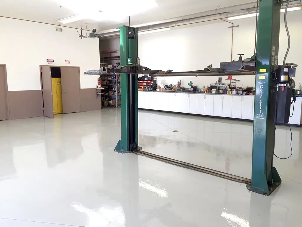 The staff of Glenwild needed a high-strength, durable surface to protect the concrete from future damage and decay, while also helping to hide the damage already sustained. In addition to being highly durable, the coating would need to stand up to metal shavings being scratched across the floor, hot metal sparks impacting the coating, impacts from dropped tools and numerous other hazards in addition to being exposed to common automotive chemicals and spills. The challenge was to find a floor coating system that fulfilled their specific needs while having a quick turnaround time, being easy to install, and providing a brighter and more professional environment.