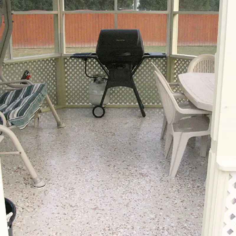 Material: Water Based Epoxy with Acrylic Based Polyurethane and Decorative Flakes